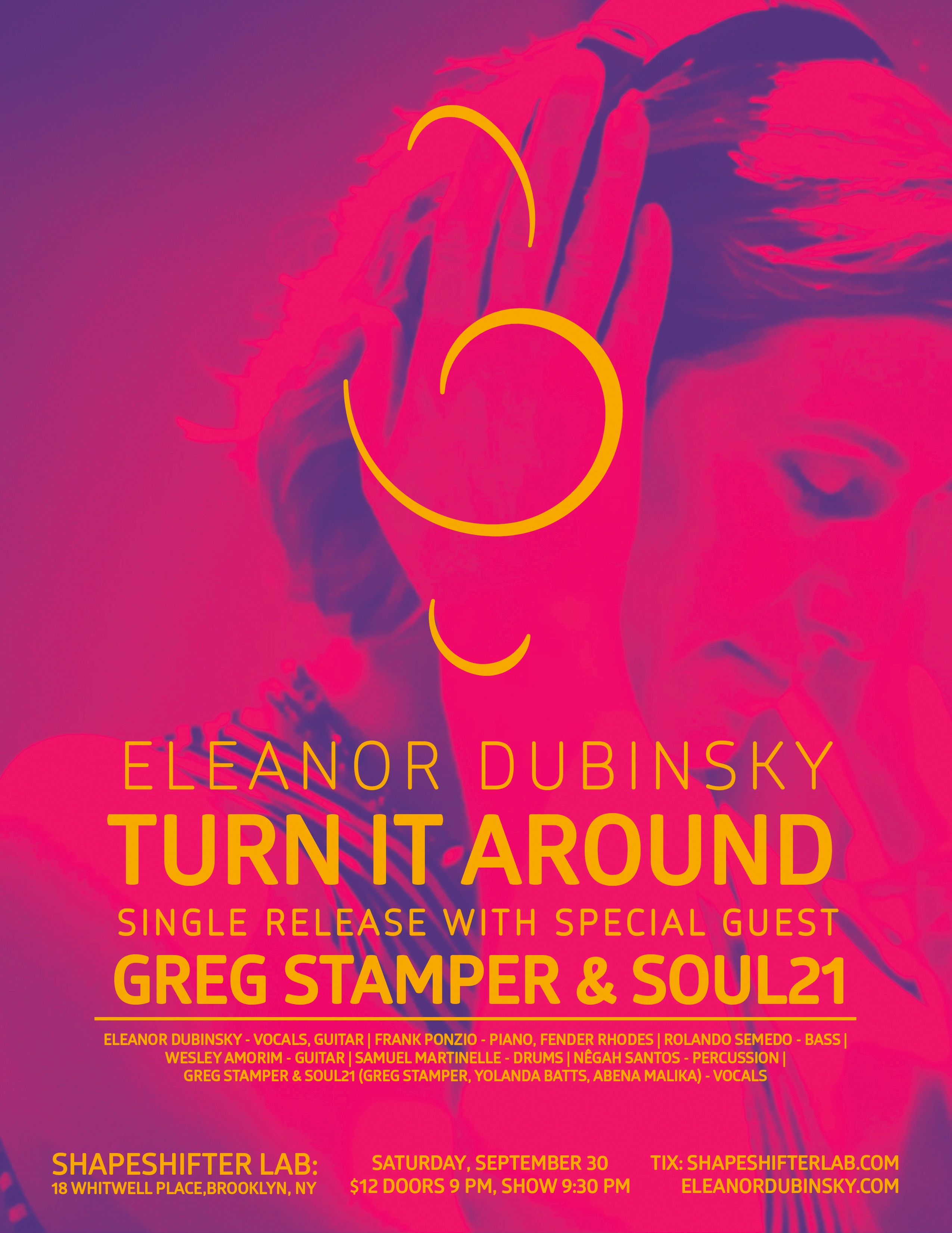 Eleanor Dubinsky has found the tender edge where jazz, world, and pop sensibilities meet emotionally forthright songwriting. In this highly anticipated CD release concert, Dubinsky presents her new album Soft Spot Of My Heart, laid down in studios in Lisbon, Portugal and NYC over the course of 2017. A globally savvy collection of songs highlighting Eleanor's potent vocals and embracing the musical colors and influences of a diverse group of collaborators from Portugal, NYC, Cape Verde and Brazil, Soft Spot Of My Heart draws from a variety of musical influences including gospel, folk, jazz, Latin and Luso-African. To underline her uplifting message, Eleanor welcomes special guests from Brooklyn based contemporary gospel ensemble Greg Stamper Stamper & Soul21, who also make a noteworthy appearance on her new record.